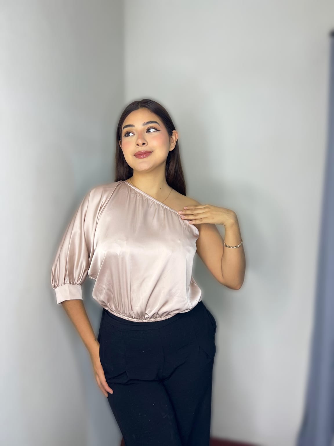 Blusa Una Manga SHIANELL Rojo, Negro, Celeste, Rosa, Be
