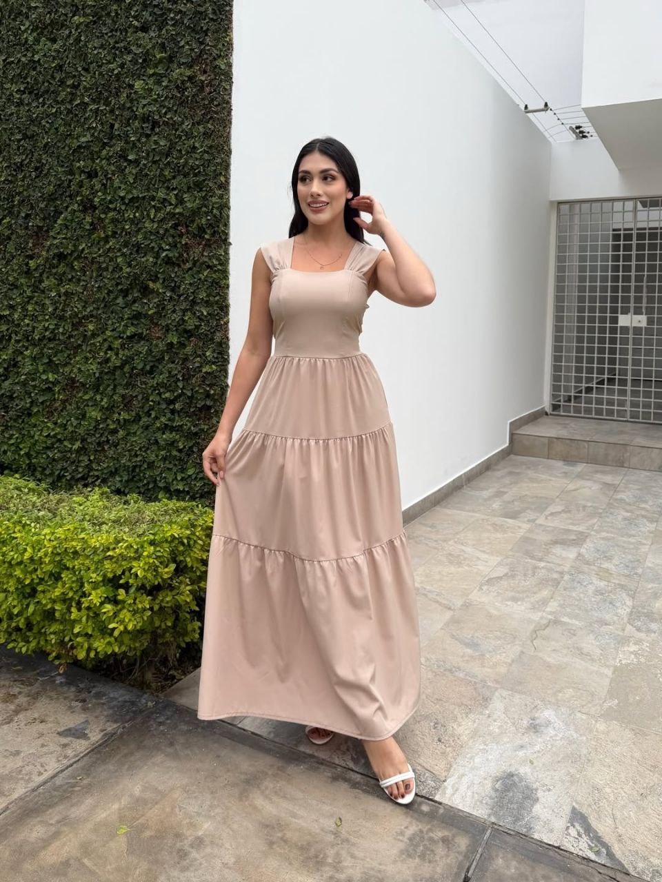 Vestido Maria LOUISETTE Verde Beige Ladrillo Rojo